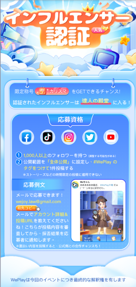 WePlayのイベント「インフルエンサー認証」について