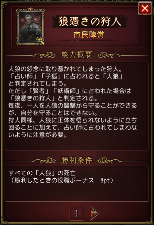 - 人狼ジャッジメント/狼憑きの狩人 へ行く。