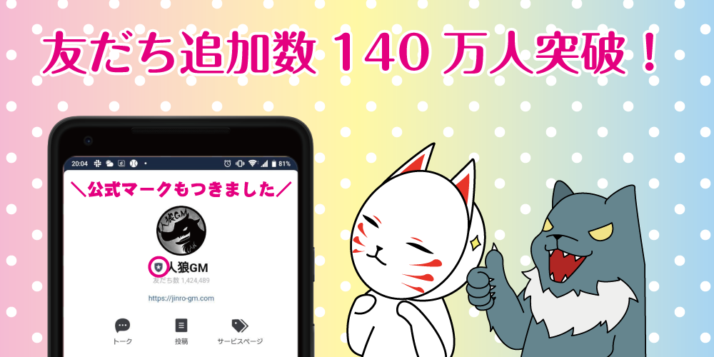 これからは、ぜひ「人狼GM」と検索すると出てくるよ!と友人に広めていただければ幸いです!