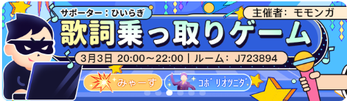 本日、20時よりWePlay公認イベント「歌詞乗っ取りゲーム」がボイスルームにて開催されます。