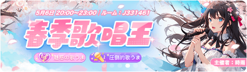 本日20時より、WePlayボイスルームにて、公認イベント「春季歌唱王」が開催されます。