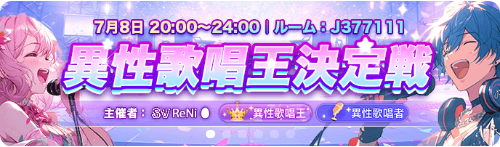 本日20時から、WePlayボイスルームにて異性歌唱王決定戦が行われます。