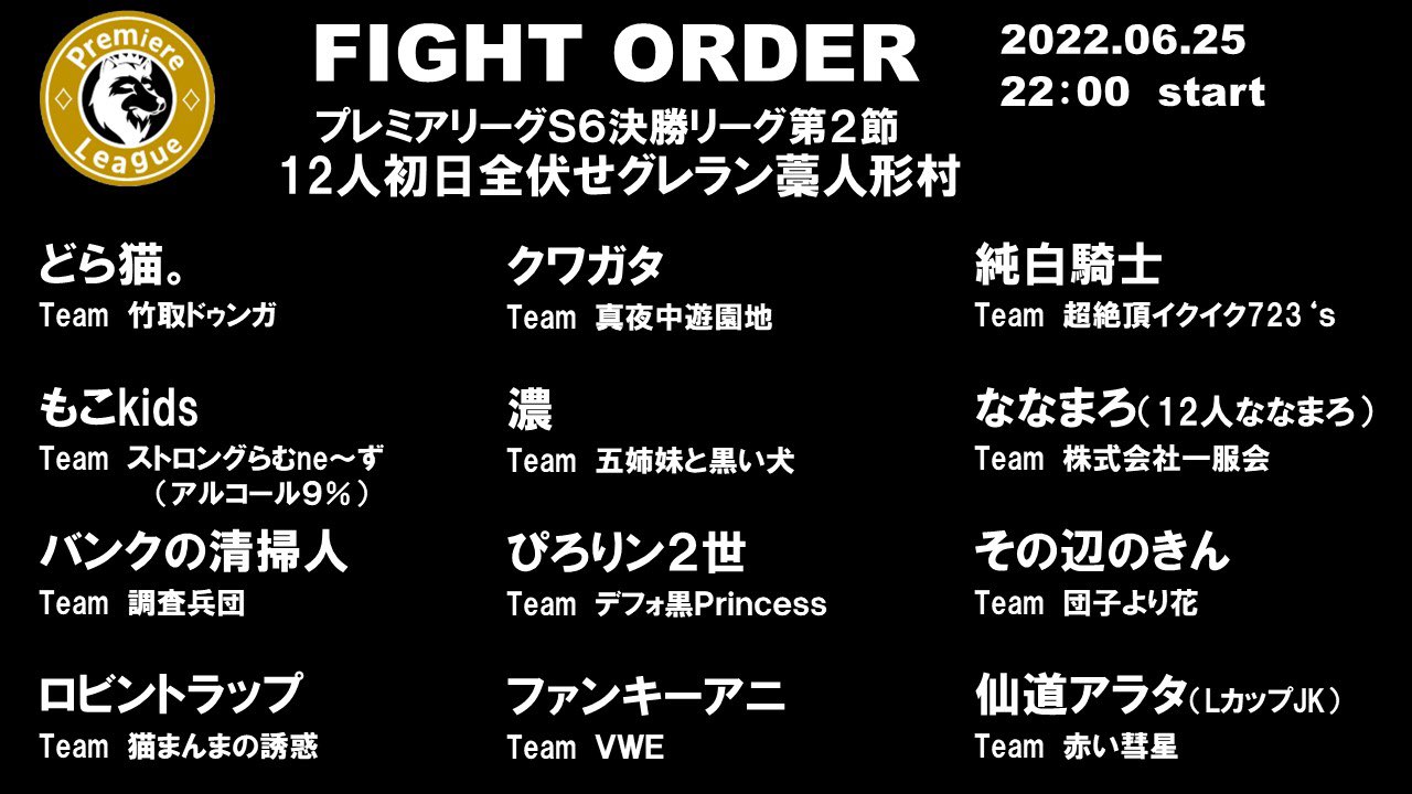 #ref(): File not found: "プレミアリーグs6-7組み合わせ.png" at page "プレミアリーグ/season6/第7節"