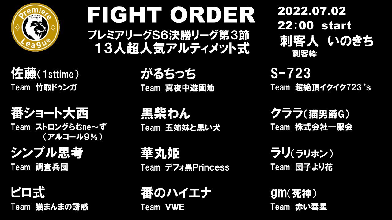 #ref(): File not found: "プレミアリーグs6-8組み合わせ.png" at page "プレミアリーグ/season6/第8節"