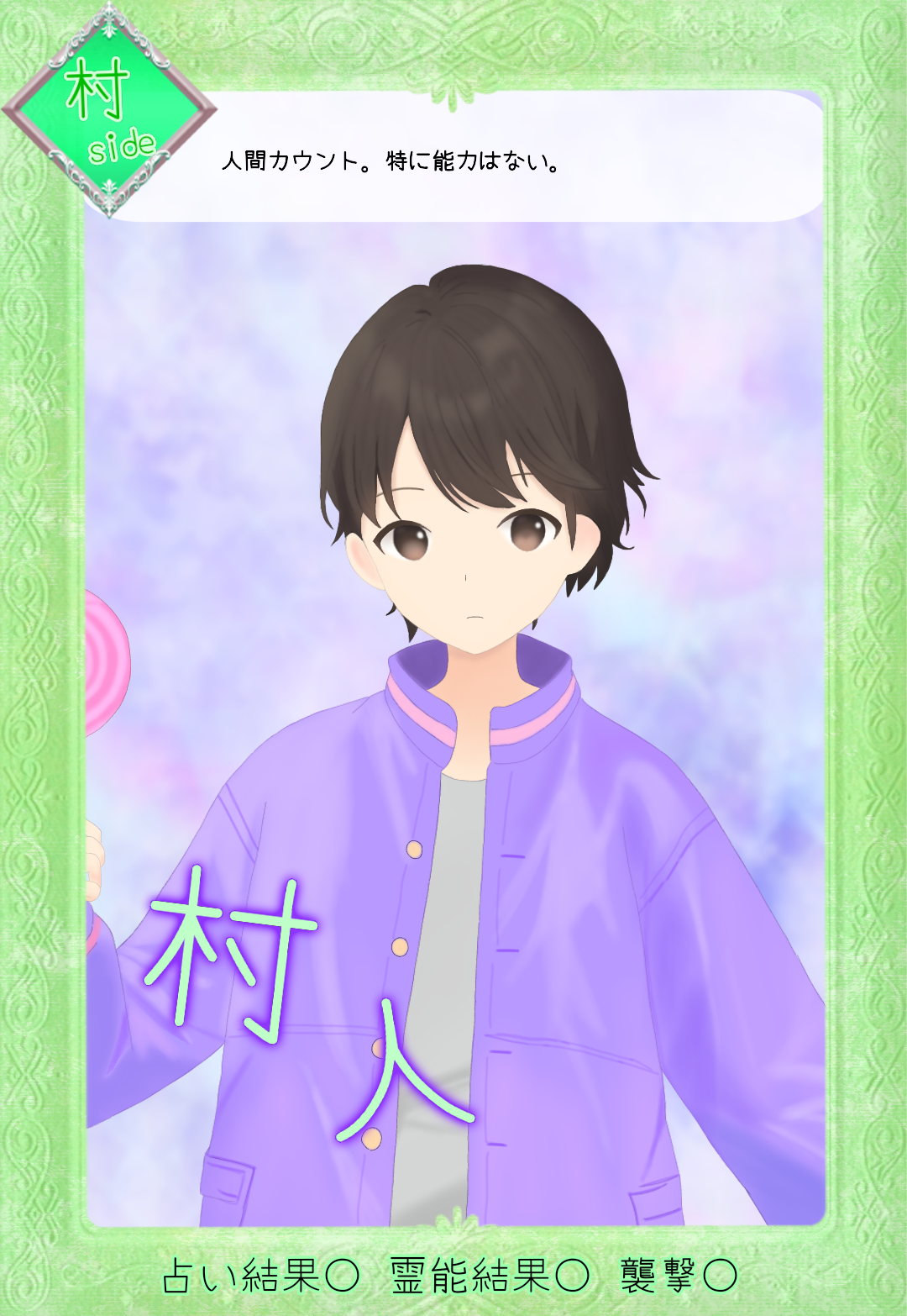 本ページは、49 (7の2じょう) 氏の作成した人狼ゲームのカードを掲載しています。