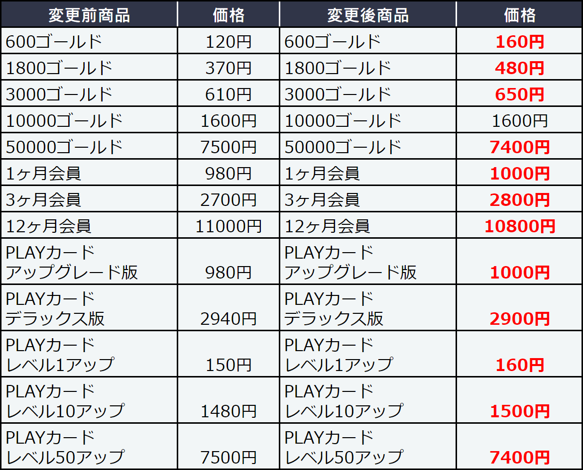 WePlayの課金アイテムの値段変更がTwitterおよびゲーム内メッセージで発表されました。10月5日に多くのアイテムの価格が値上がりします。また、同日中にメンテナンスを行う可能性があります。