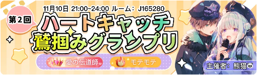 本日21時よりWePlayボイスルームにて公認イベント「第2回ハートキャッチ鷲掴みグランプリ」が開催されます。