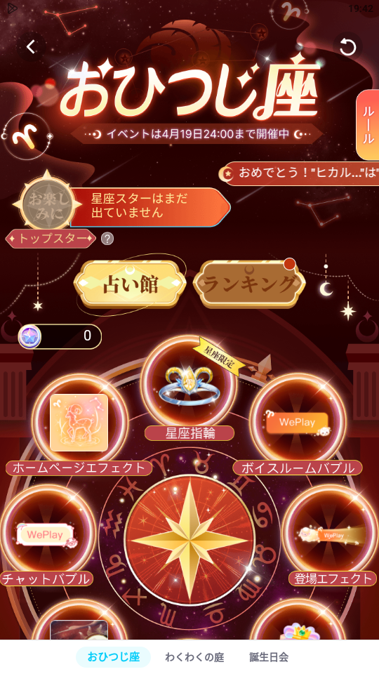 本日より、WePlay星座イベントおひつじ座が開始されました。