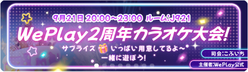 本日20時より、WePlayボイスルームにて公認イベント「WePlay2週年カラオケ大会」が開催されます。