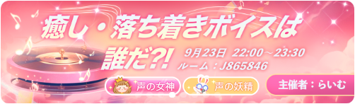 本日22時よりWePlayボイスルームにて公認イベント「癒し・落ち着きボイスは誰だ?!」が開催されます。
