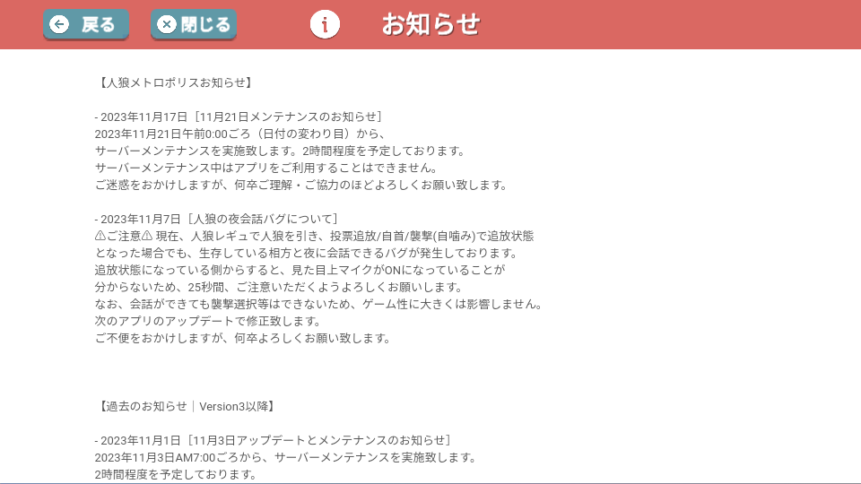 本日0時ごろより、2時間ほどアプリが使用できなくなります。