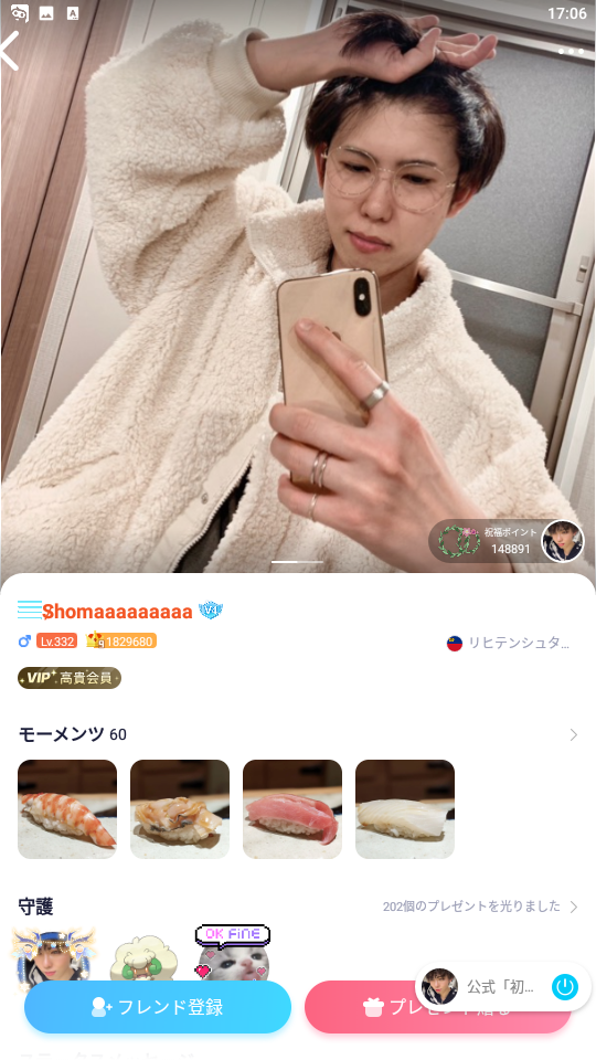 ルームホストのプロフィールには「公式」タグがなく、非公式のルームであると思われます。