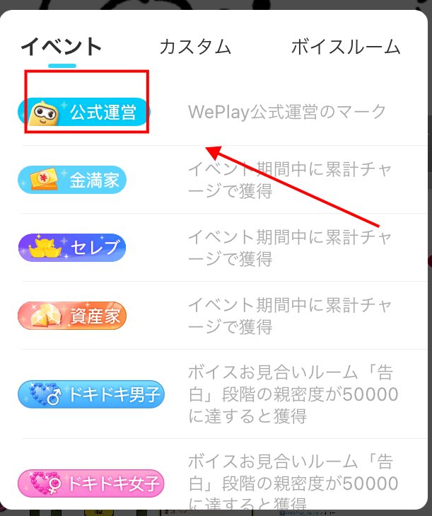 また、WePlayの公式アカウントは下記の称号がついています。