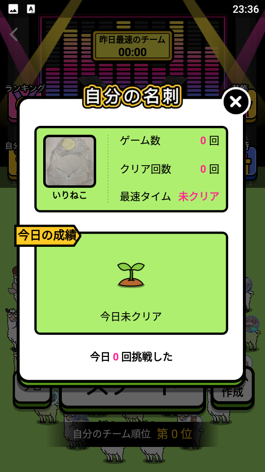 | 自分の名刺 | 自分の戦績を表示します。 |