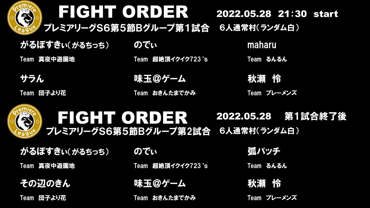 #ref(): File not found: "プレミアリーグs6-5組み合わせ.png" at page "プレミアリーグ/season6/第5節"