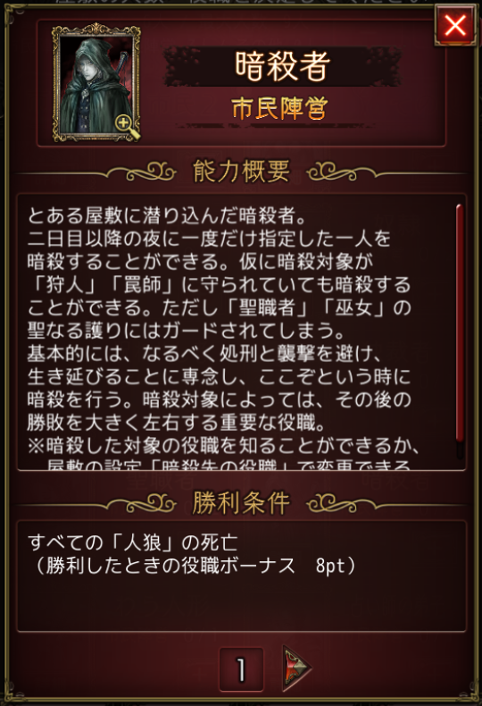- 人狼ジャッジメント/暗殺者 へ行く。