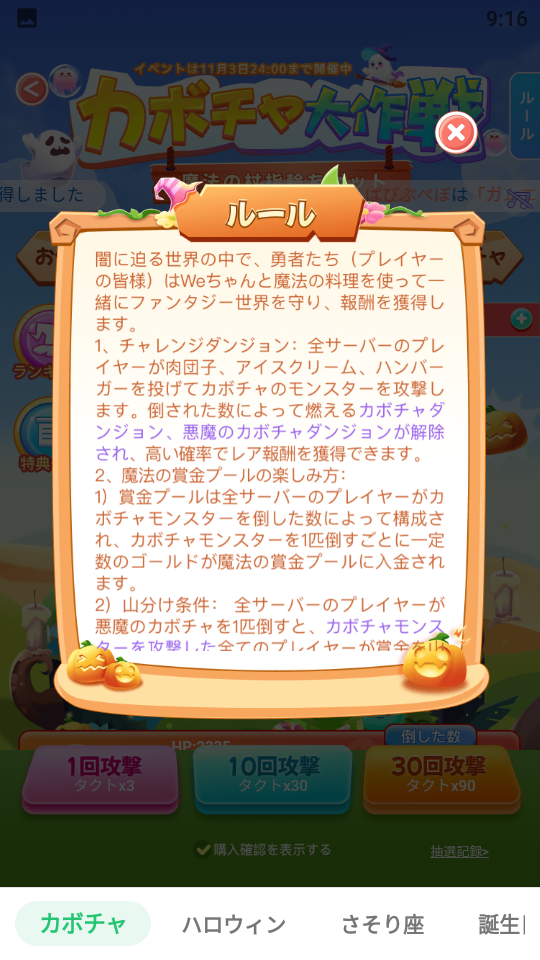 WePlayで新イベント、カボチャ大作戦・ハッピーハロウィンが開催されます。終了は、2022年11月3日24時。