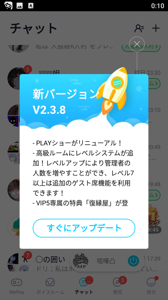 最新バージョンは、ボイスルームの仕様変更が行われています。