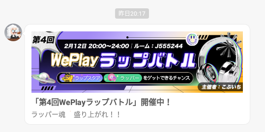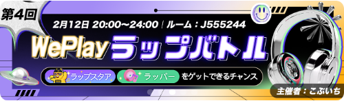 本日、20:00より第4回WePlayラップバトルが開催されます。